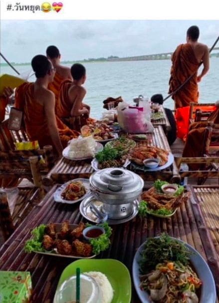 เมื่อวานนี้ (17 มิ.ย.) มีการเผยแพร่ภาพพระสงฆ์กลุ่มหนึ่งจากวัดดังในขอนแก่น โพสต์รูปล่องแพ ฉันอาหาร ที่แพการะเกด เขื่อนลำปาว จ.กาฬสินธุ์ พร้อมบรรยายภาพว่า ‘วันหยุดของพวกเรา’ ทำให้เกิดกระแสวิพากษ์วิจารณ์ถึงความเหมาะสมและวินัยสงฆ์