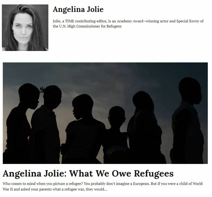 บทความของ “แองเจลิน่า โจลี่” เกี่ยวกับผู้ลี้ภัย