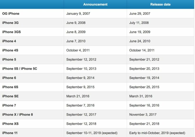 สำหรับ iPhone 11 คาดว่าจะมีอีเว้นเปิดตัวในช่วงประมาณเดือนกันยายน ตามเดิมที่ทำมาแล้วหลายปี ส่วนเรื่องราคา หากอ้างอิงจากโมเดลปัจจุบันคือ iPhone xs และ xs Max ที่ราคาเริ่มต้น $1000 และ $1100 ในตัว XS Max และเพิ่มขึ้นตามจนาดความจุ ส่วนปีนี้ iPhone 11 คากว่าจะมีราคาเริ่มต้นที่ $1000 เหมือนเดิมแต่ความจุอาจจะไม่มี 64GB เหมือนก่อน แต่จะเริ่มที่ 128GB แทน $1100 สำหรับ 256GB และ $1200 สำหรับ 512GB