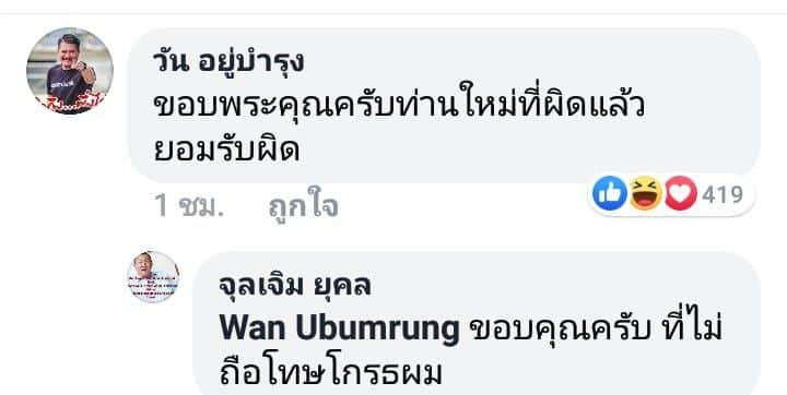 สุดท้ายเรื่องก็จบลงด้วยดี นายวันไม่ถือโทษโกรธม.จ.จุลเจิมต่อโพสต์ดังกล่าว
