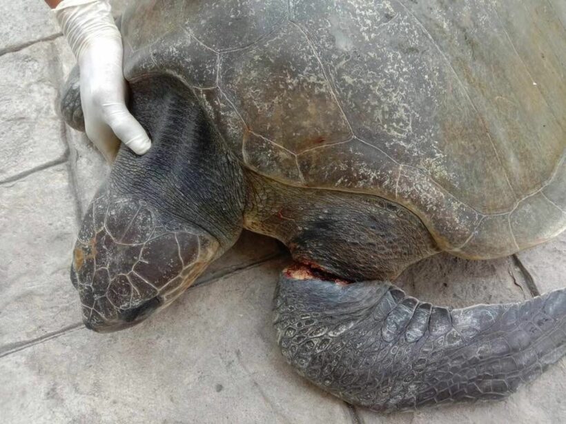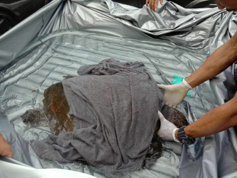 ช่วยชีวิตเต่าหญ้า ติดอวน คลื่นซัดเกยตื้นหน้าหาดพังงา ส่งพักฟื้นศูนย์วิจัย