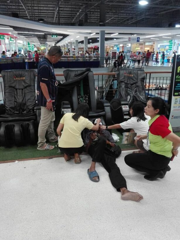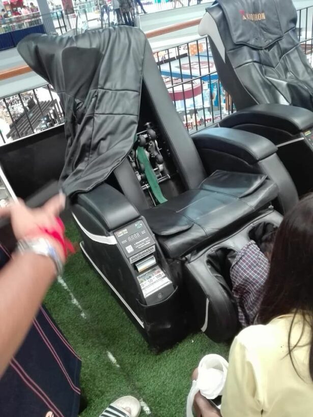 “วันนี้มาเดินห้าง เจอคุณลุงโดนเก้าอี้นวดเพื่อสุขภาพหนีบคอเกีอบตายคนช่วยกันดึงกว่าจะออก ระวังกันด้วยนะคับๆ”