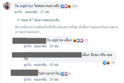 ความคิดเห็นของคุณ “วัน อยู่บำรุง” ในเฟสบุ๊กของต๊อด ปิติ