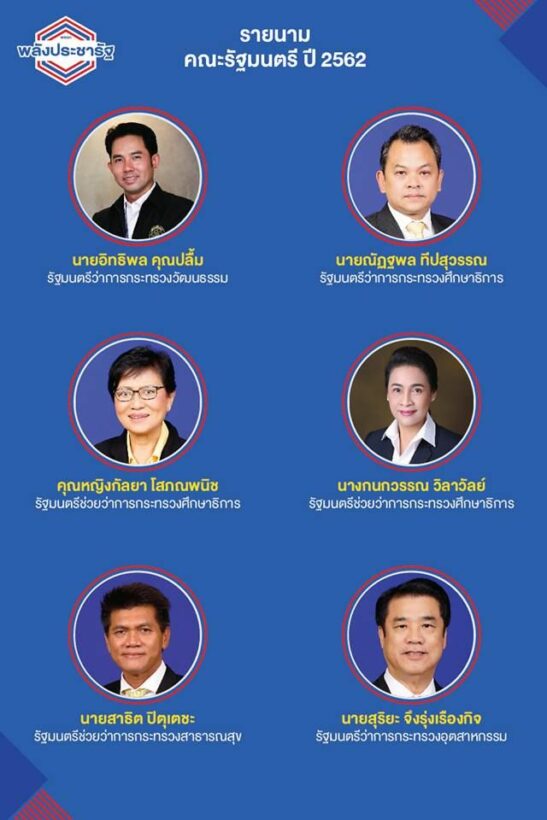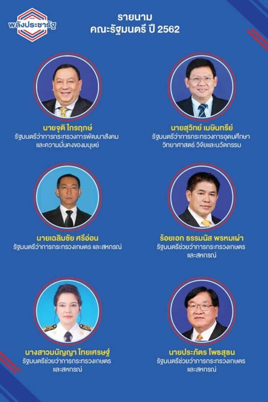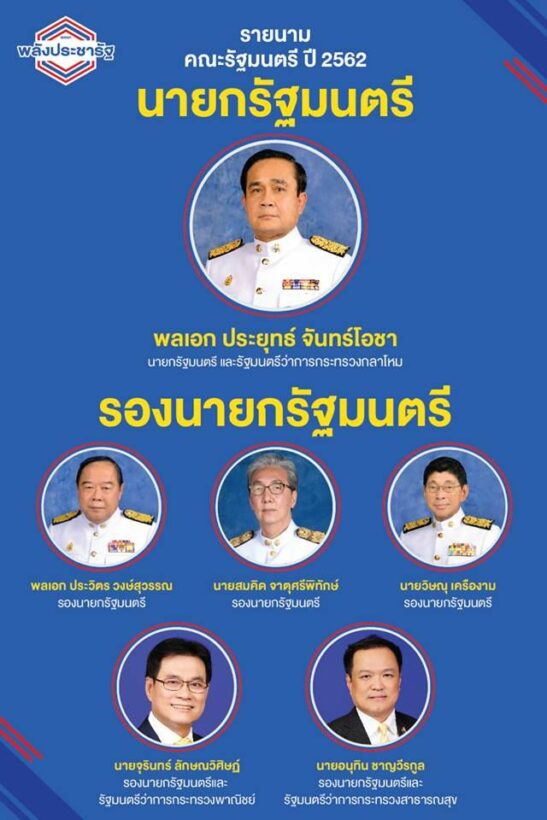 รายชื่อคณะรัฐมนตรี รัฐบาลประยุทธ์ จันทร์โอชา 2562