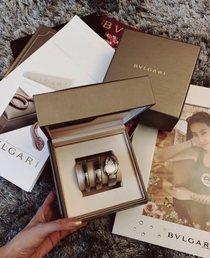 ซึ่งหากดูจากเว็ปไซต์แล้ว นาฬิกาที่หนุ่มพอร์ชให้เป็นของขวัญ คือยี่ห้อ Bulgari รุ่น Serpenti Tubogas ที่ราคาตามป้ายก็มีเฉียดๆ 3 แสนกันละจ้า
