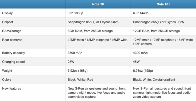 สเปค Galaxy Note 10 และ 10+ เผยชิพเซ็ต, แบตเตอรี่, หน้าจอ ฯลฯ