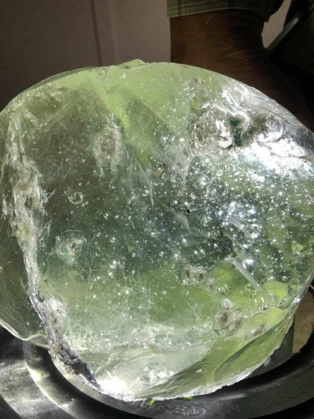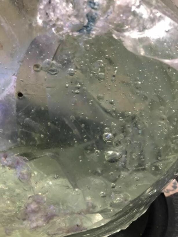 โดยลักษณะดังกล่าวที่เจ้าของโพสต์ถ่ายไว้มีลักษณะคล้ายทรงกลมสีใส เนื้อค่อนข้างขุ่น มองดูคล้ายยาง แต่มีลักษณะแข็ง และมีฟองอากาศอยู่ภายใน ไม่สมารถระบุได้ว่าเป็นอะไร จึงถามเพื่อให้ชาวเน็ตช่วยวิเคราะห์