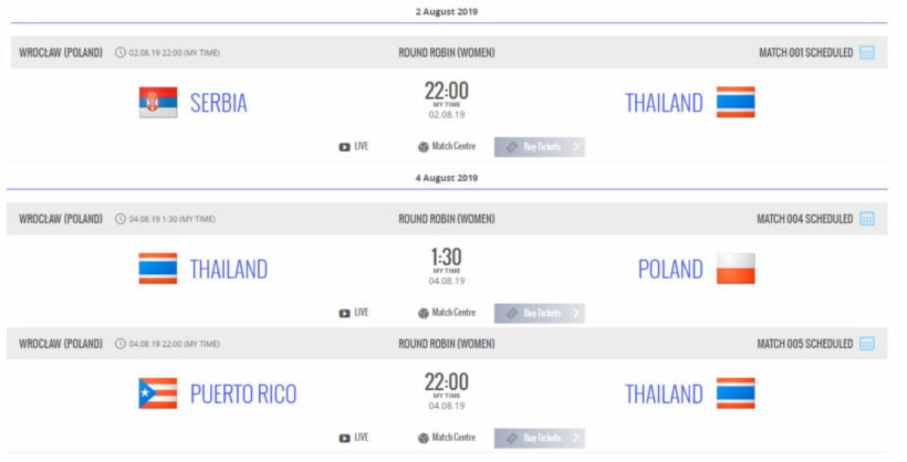 โปรแกรมแข่งขันวอลเลย์บอลคัดโอลิมปิก ทีมไทยพบเซอร์เบีย-โปแลนด์-ปัวโตฯ