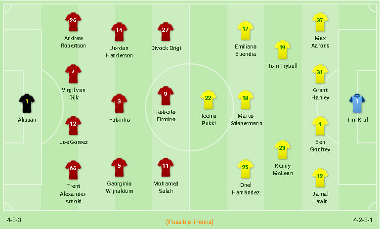ผลงานการเจอกันนัดหลังสุดระหว่างทั้งคู่ต้องย้อนกลับไปจนถึงปี 2016 ลิเวอร์พูลบุกไปชนะนอริช ซิตี้ได้ 5-4 ในเกมสุดมัน ผู้เล่นในเกมวันนั้นมีเพียงแค่ จอร์แดน เฮนเดอร์สัน เจมส์ มิลเนอร์ อดัม ลัลลาน่า และโรแบร์โต้ ฟีร์มิโน่ เท่านั้นที่ยังคงเป็นลูกทีมของ เจอร์เก้น คล็อปป์ อยู่ในเวลานี้