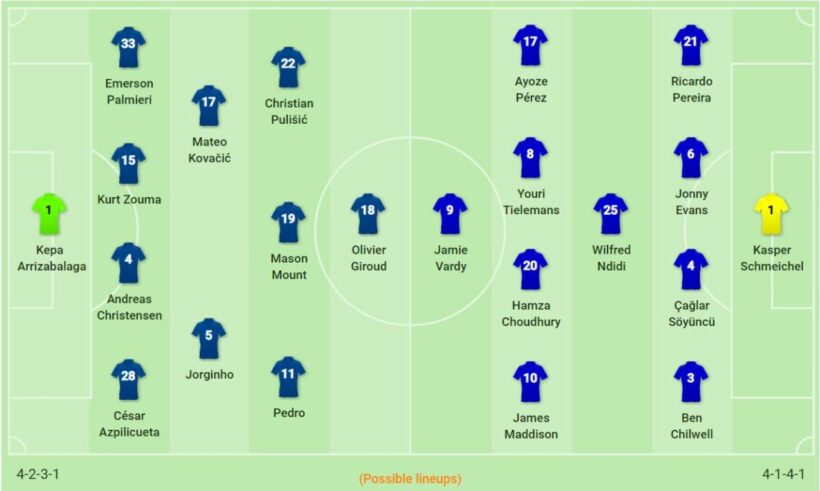 ขณะที่ เดนนิส แพรต มิดฟิลด์ที่ซื้อมาใหม่มีโอกาสที่จะลงเล่นนัดนี้ด้วย การจัดทัพยังน่ายึดจากทีมชุดเกมแรกแนวรุกทั้ง อโยเซ่ เปเรซ, เจมส์ แมดดิสัน และ เจมี่ วาร์ดี้ พร้อมลงสนามทั้งหมด