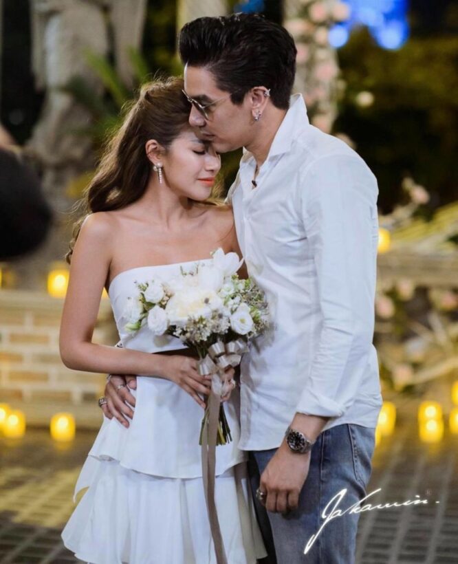 บรรยากาศในงานนั้นราวกับเป็นงานแต่งงานจริงๆ เลยทีเดียว เพื่อนๆ และแฟนคลับก็ได้มาร่วมแสดงความยินดีกันเป็นจำนวนมาก ทางเราก็ขอแสดงความยินดีกับทั้งคู่ด้วยนะคะ