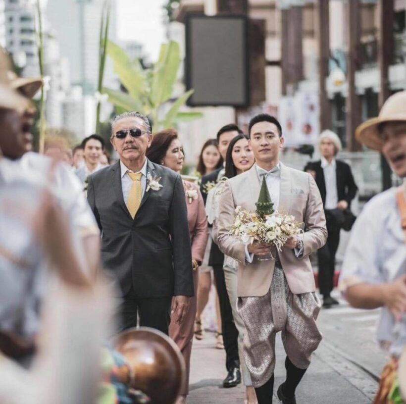 โดยงานจัดแบบไทย สวมชุดไทย มีพิธีแห่ขบวนขันหมาก และชูวิทย์ผู้เป็นพ่อ ก็ได้มาสู่ขอเจ้าสาวให้กับลูกชาย จากนั้นจึงเป็นพิธีสวมแหวนหมั้น และจดทะเบียนสมรส ท่ามกลางความยินดีของเหล่าครอบครัว ญาติ และผู้ที่มาร่วมงาน