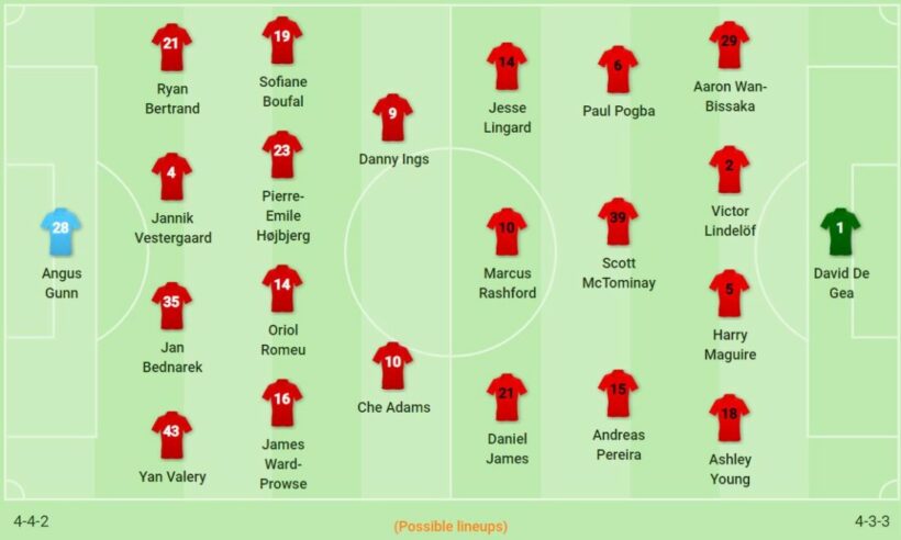 โอเล่ กุนนาร์ โซลชา กุนซือใหญ่ของ ปีศาจแดง มีปัญหาในแนวรุก เนื่องจาก อองโตนี่ มาร์กซิยาล ที่เจ็บต้นขาจากสัปดาห์ก่อนทำให้ไม่สามารถลงเล่นเกมนี้ได้แน่นอนแล้ว ขณะที่ อเล็กซิส ซานเชซ ก็เพิ่งจะถูกปล่อยยืมไป อินเตอร์ มิลาน