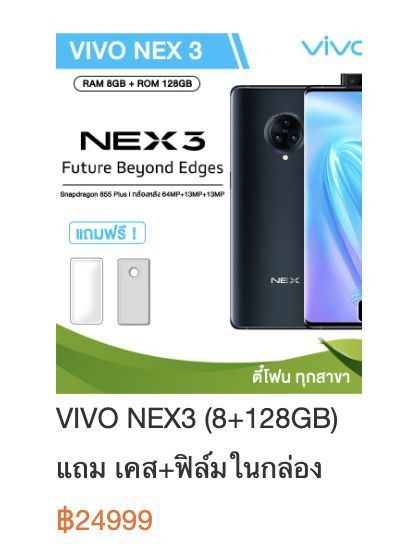 Vivo NEX 3 เรือธงสเปคแรง Snap855+ แรม 8GB, จอไร้ขอบ กล้อง 64 ล้านฯ