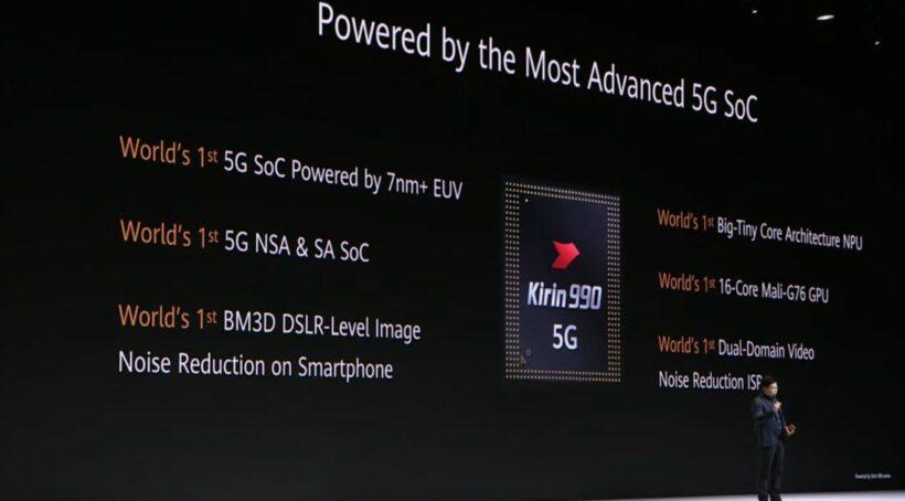 Huawei Mate 30 และ 30 Pro มาพร้อมชิพเซ็ต Kirin 990 5G แบบ 7 นาโนเมตร EUV และเป็นรุ่นแรกที่รองรับ 5G ได้สองช่องทาง ทั้ง NSA และ SA, มีการออกแบบดีไซน์เสาอากาศสำหรับรับสัญญาณ 5G แบบให่ ที่มีเสาอากาศสำหรับรับสัญญาณ 5G โดยเฉพาะมากถึง 14 ตัว CPU ใน Kirin 990 ทำงานได้ดีขึ้นถึง 23% และประหยัดพลังงานขึ้นถึง 23% ขณะที่ GPU ทำงานดีขึ้น 39% และประหยัดพลังงานขึ้น 32% เพื่อการใช้งานที่ยาวนานขึ้น, พูดถึงการใช้งานนาน Huawei Mate 30 Pro มาพร้อมแบตเตอรี่ 4500mAh และ Mate 30 ให้มา 4200mAh พร้อมระบบชาร์จไว 40 วัตต์ และรองรับชาร์จไร้สายได้ 27 วัตต์