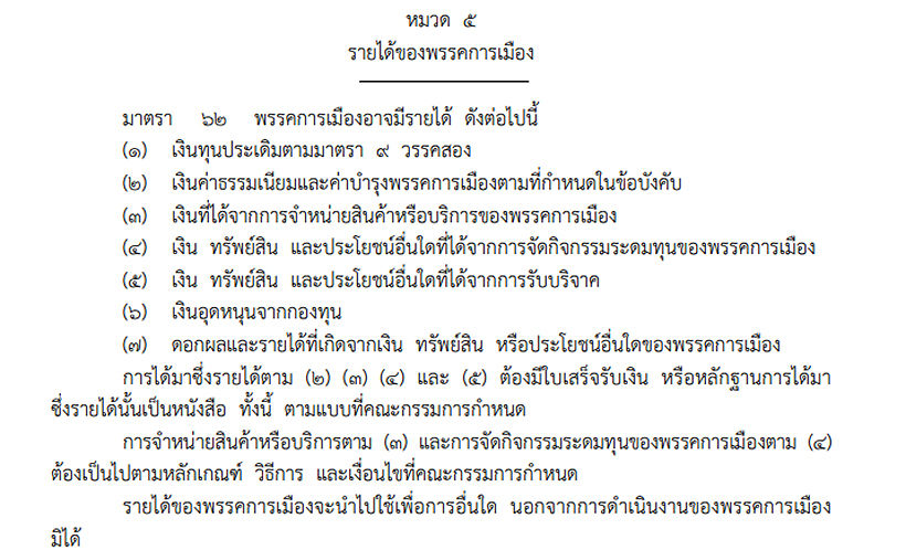 พรป.พรรคการเมือง 2560 ม.62 ที่นายศรีสุวรรณอ้างถึง
