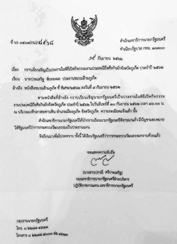 ชาวภูเก็ตเศร้า บิ๊กตู่ให้ รมว.วัฒนธรรม เป็นประธานเปิดงานกินผักแทน