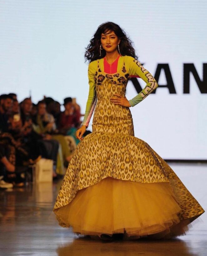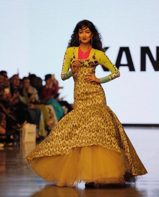 ชุดต่อมาเป็นเสื้อแขนยาวสีสันสดใส พร้อมลวดลายสวยงาม งานนี้แพนเค้กยังถือเป็นฟินาเล่ของงานด้วย จบท้ายก็เรียกเสียงฮือฮา และเสียงปรบมือจากคนในฮอลล์ได้เป็นอย่างดี เจ้าตัวจะสวยเริ่ดแค่ไหน ไปชมกันเลย