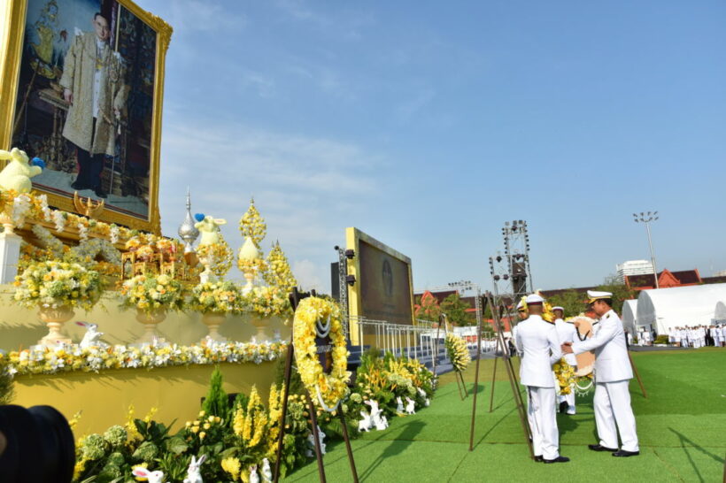 นายกรัฐมนตรีวางพวงมาลา จำนวน 2 พวง ในนามนายกรัฐมนตรี และคณะรัฐมนตรี ณ หน้าพระบรมฉายาลักษณ์พระบาทสมเด็จพระบรมชนกาธิเบศร มหาภูมิพลอดุลยเดชมหาราช บรมนาถบพิตร แล้วนายกรัฐมนตรีพร้อมผู้ร่วมพิธีถวายบังคม 3 ครั้ง เสร็จพิธี