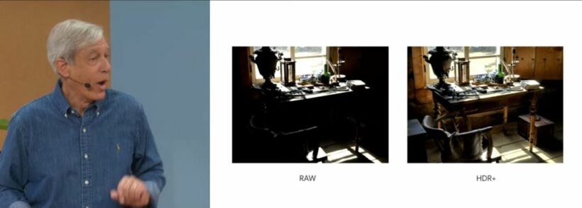 HDR+ การกดชัตเตอร์หนึ่งครั้ง จะเก็บภาพทั้งหมด 9 ภาพ ในรายละเอียดที่ต่างกัน และนำทั้งหมดมารวมกันเพื่อให้ออกมาเป็นหนึ่งภาพที่สมบูรณ์แบบ แถมยังสามารถถ่ายไฟล์ RAW ได้อีกด้วย. LiveHDR+ ที่จะให้ภาพที่สมจริงเหมือนกับที่ตาคุณเห็น, Dual Exposure Controls ที่ให้คุณสามารถควบคุมให้ส่วนที่เป็นความสว่างและความมืดแบบอิสระเพื่อให้ได้ภาพตามที่คุณต้องการ. White Balancing, Portrait Mode, SLR like bokeh, Macro Mode. Night Sight ที่สามารถถ่ายดวงดาวเวลากลางคืนได้ แต่ต้องใช้ขาตั้ง และอีกมากมาย. ส่วนกล้องหน้าความละเอียด 8 ล้านพิกเซล F2.0แต่ที่น่าสนใจคือ Google ไม่ได้พูดถึงเรื่องของการถ่ายวีดีโอแต่อย่างใด สงสัยจะไม่เน้น.