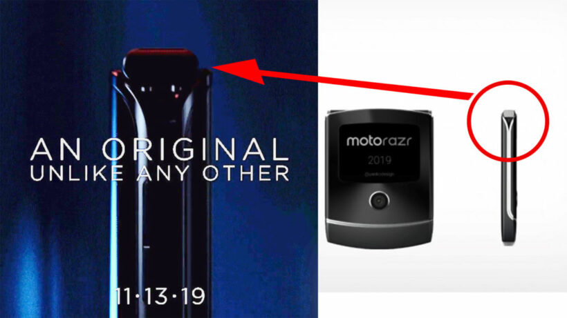 บัตรเชิญดังกล่าวเป็นลักษณะของไฟล์ GIF ซึ่งเป็นการลอกคราบของ Motorola Razr V3(คาดว่า) เผยให้เห็นสิ่งที่อยู่ภายใน ซึ่งเห็นเป็นลักษณะของขอบด้านข้าง พร้อมข้อความ “An oritinal unlike any other” ที่แปลได้ว่า “ดั้งเดิมที่ไม่เหมือนใคร” และเมื่อเปรียบเทียบกับภาพคอนเซ็ปต์ที่หลุดออกมาก่อนหน้านี้ ก็มีความคล้ายกันพอสมควร จึงอนุมานได้ว่า นี่แหละ คือ Motorola Razr. งานอีเว้นครั้งนี้จะจัดขึ้นในวันที่ 13 พฤษจิกายน 2019 ในดาวน์ทาวน์, Los Angeles.