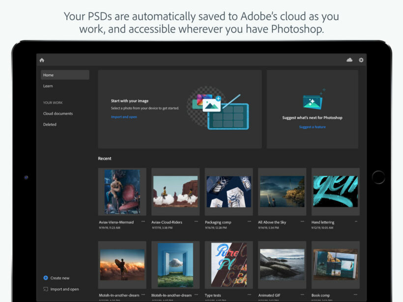 Adobe Photoshop เวอร์ชั่นสำหรับ iPad มีฟีตเจอร์เด่นๆอย่างเช่น สามารถทำงานกับไฟล์ PSD จาก Photoshop เวอร์ชั่นเดสท็อปได้เต็มรูปแบบ, Spot healing และ Blend โหมด แบ่งเป็นเลเยอร์สชัดเจนเหมือนทำงานในเวอร์ชั่นเดสท็อป, รองรับการทำงานแบบสัมผัสด้วยนิ้วมือและ Apple Pencil เพื่อการทำงานที่ลื่นไหล, Quick Selection tool และ Lasso tool ที่แม่นยำสุดเมื่อใช้คู่กับ Apple Pencil, เซฟงานผ่าน Adobe cloud แบบอัตโนมัติ ให้คุณทำงานได้ทุกที่ที่มี Photoshop, และฟีเจอร์อื่นๆอีกมากมาย.