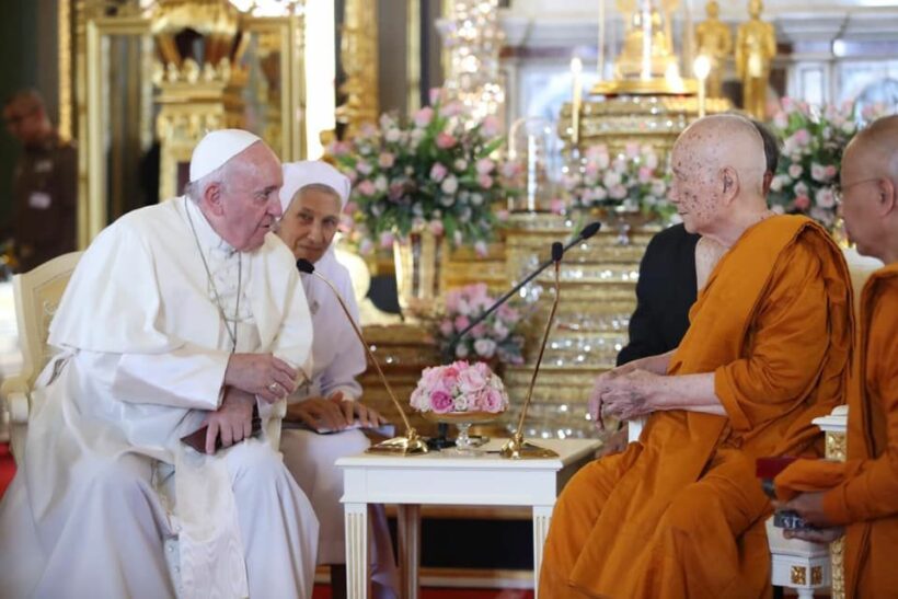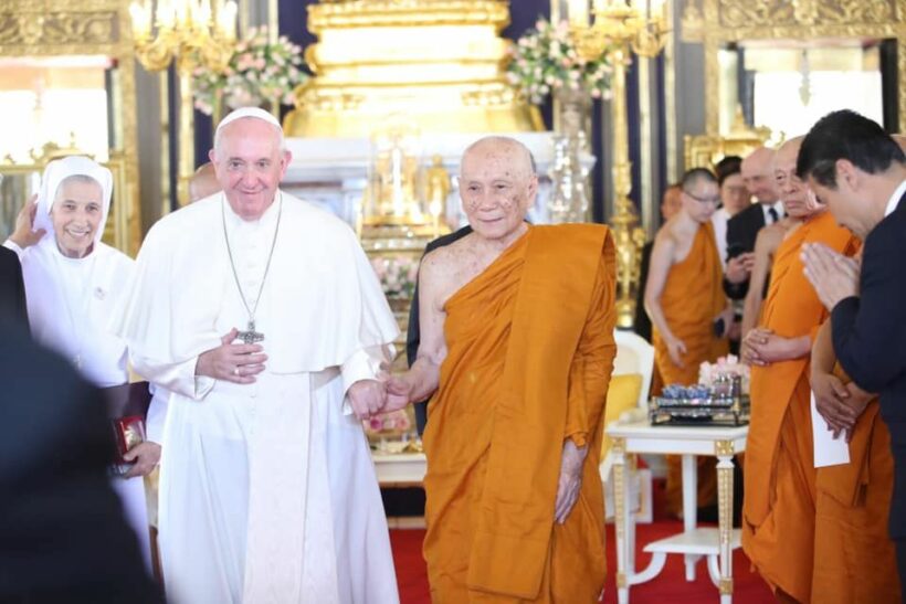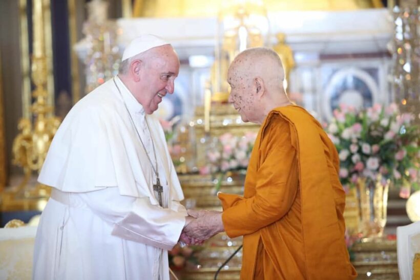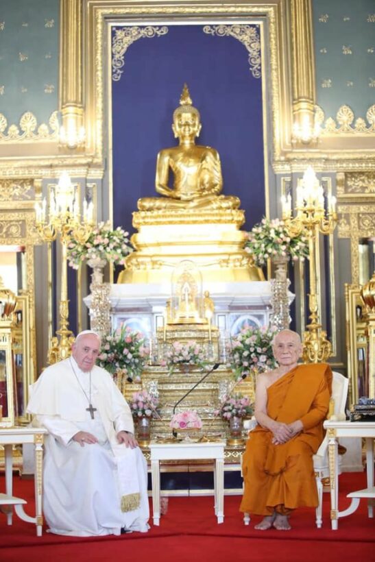 พระสันตะปาปา – กำหนดการสมเด็จพระสันตะปาปาฟรานซิส วันที่ 21 พ.ย. หลังจากเสด็จทำเนียบรัฐบาล นายกรัฐมนตรีถวายการต้อนรับและเข้าเฝ้า สำนักงานเลขานุการสมเด็จพระสังฆราช ได้เผยแพร่ภาพและรายงานเจ้าพระคุณ สมเด็จพระอริยวงศาคตญาณ สมเด็จพระสังฆราช สกลมหาสังฆปริณายก เสด็จลงพระอุโบสถ วัดราชบพิธสถิตมหาสีมาราม ทรงรับสมเด็จพระสันตะปาปาฟรังซิส ประมุขแห่งคริสต์ศาสนานิกายโรมันคาทอลิก และนครรัฐวาติกัน ซึ่งเสด็จเยือนราชอาณาจักรไทยอย่างเป็นทางการ