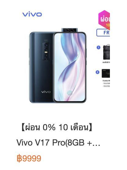 Vivo V17 Pro สมาร์ทโฟนที่มาพร้อมดีไซน์สุดหรูและโดดเด่นในเรื่องของการถ่ายภาพ ด้วยกล้องหว่า 6 ตัวพร้อม AI อัจฉริยะ ให้คุณได้ประสบการณ์การถ่ายภาพที่ล้ำกว่าใคร. Vivo V17 Pro มาพร้อมกล้องหลังความละเอียดที่ 48 ล้านพิกเซล f/1.8 มุมกว่างเท่าระยะ 26มม. เลนส์ Ultrewide ที่ความละเอียด 8 ล้านพิกเซล f/2.2 เท่าระยะเลนส์ 16มม. เลนส์ Telephoto ความละเอียด 13 MP พร้อม 2x optical zoom และ depth sensor ความละเอียด 2 ล้านพิกเซล f/2.4 ถ่ายวีดีโอได้สูงสุดที่ความละเอียด 4K@30fps.