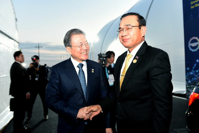 ประยุทธ์เยือนเกาหลีใต้ – วันที่ 25 พ.ย. ข่าวทำเนียบรัฐบาล รายงาน เมื่อ เวลา 16.30 น. ตามเวลาท้องถิ่นของวันที่ 24 พ.ย. พลเอกประยุทธ์ จันทร์โอชา นายกรัฐมนตรีและรัฐมนตรีว่าการกระทรวงกลาโหม และภริยา พร้อมด้วยคณะ เดินทางถึงฐานทัพอากาศกิมแฮ (Gimhae Air Base) จากนั้น นายกรัฐมนตรีออกเดินทางไปพื้นที่เขตคังซอ ฝั่งตะวันตกของนครปูซาน เพื่อร่วมพิธีเปิดโครงการ Busan Eco-Delta Smart City โดยมีผู้นำประเทศสมาชิกอาเซียนและประธานาธิบดีสาธารณรัฐเกาหลีเข้าร่วมงานด้วย
