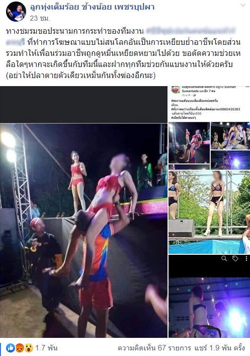 กลายเป็นดราม่าร้อนโลกออนไลน์ เมื่อ เฟซบุ๊ก ลูกทุ่งเต็มร้อย ช้างน้อย เพชรบุปผา ได้โพสต์ข้อความตำหนิวงซุปเปอร์แดนซ์วงหนึ่ง ซึ่งโพสต์รูปลักษณะวาบหวิวและกิริยาไม่เหมาะสม ทั้งเอาเป้าซุกหน้าคนดู ให้คนดูสอดแบงก์ในร่องอก ไปจนถึงใช้มือจับหว่างขา สร้างกระแสวิพากษ์วิจารณ์เป็นอย่างมาก ข้อความระบุว่า