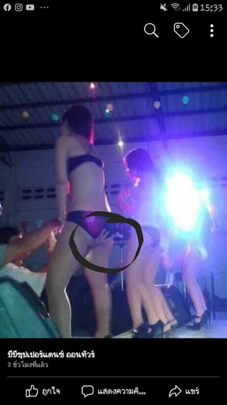 กลายเป็นดราม่าร้อนโลกออนไลน์ เมื่อ เฟซบุ๊ก ลูกทุ่งเต็มร้อย ช้างน้อย เพชรบุปผา ได้โพสต์ข้อความตำหนิวงซุปเปอร์แดนซ์วงหนึ่ง ซึ่งโพสต์รูปลักษณะวาบหวิวและกิริยาไม่เหมาะสม ทั้งเอาเป้าซุกหน้าคนดู ให้คนดูสอดแบงก์ในร่องอก ไปจนถึงใช้มือจับหว่างขา สร้างกระแสวิพากษ์วิจารณ์เป็นอย่างมาก ข้อความระบุว่า