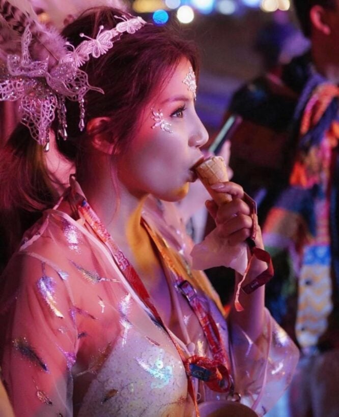 เหล่าคนบันเทิงเองก็ไม่พลาดที่จะไปร่วมงานนี้ด้วย เช่นเดียวกับสาว ใบเตย อาร์สยาม หรือ ใบเตย สุธีวัน นักร้องสาวสั้นเสมอหู ที่เมื่อปีที่แล้วเจ้าตัวก็ไปร่วมงานนี้ด้วย ในชุดสุดวาบหวิว แซ่บพริกสิบเม็ด จนทำให้ปีนี้หลายคนก็รอชมแฟชั่นของสาวใบเตยว่าจะเป็นอย่างไร