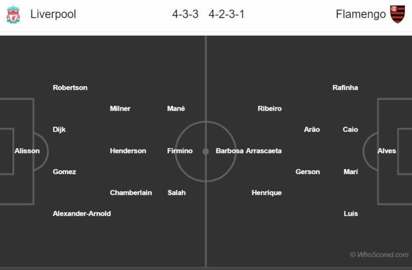 ฟลาเมงโก้ (4-2-3-1) : ดีเอโก้ อัลเวส : ราฟินญ่า, โรดริโก้ ไคโญ่, ปาโบล มารี่, ฟิลิเป้ ลุยส์ ; วิเลี่ยน อาเรา, แกร์ซอน ; เอแวร์ตอน ริเบโร่, จอร์เจียน เด อาร์ราสกาเอต้า, บรูโน่ เอ็นริเก้ ; กาเบรียล บาร์โบซ่า