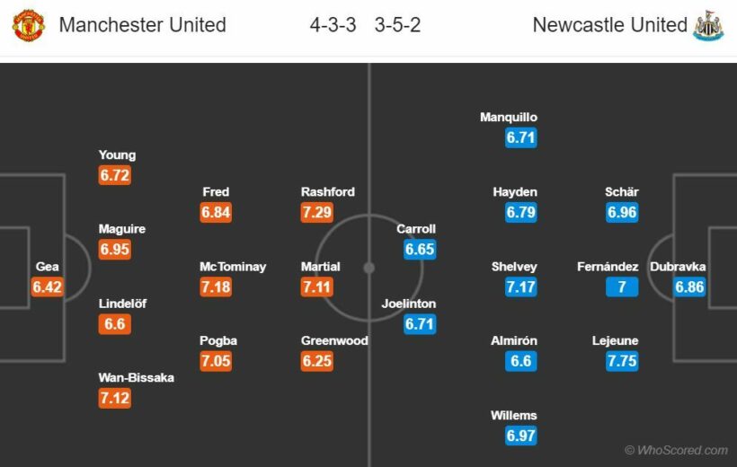 นิวคาสเซิ่ล (3-5-2) : มาร์ติน ดูบราฟก้า – ฟาเบียร์ ชาร์, เฟเดริโก้ เฟร์นานเดซ, ฟลอริย็อง เลอฌวน – ฆาเบียร์ มานกีโญ่, ไอแซ็ก เฮย์เด้น, จอนโจ้ เชลวี่ย์, มิเกล อัลมิรอน, เจโทร วิลเล่มส์ – แอนดี้ แคร์โรลล์, โชเอลินตอน