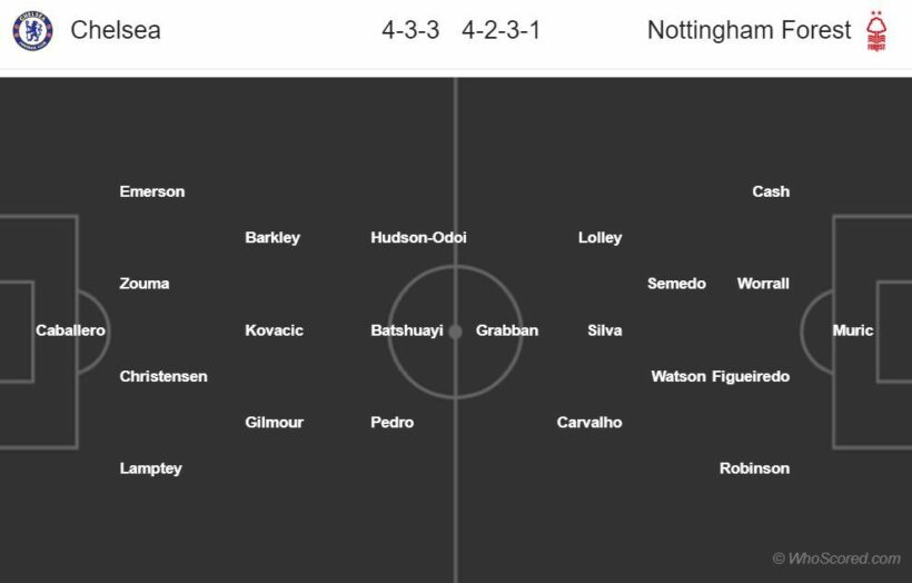 เชลซี (4-3-3) : วิลลี่ กาบาเยโร่ – ทาริก แลมป์เตย์, อันเดรียส คริสเตนเซ่น, เคิร์ต ซูม่า, เอแมร์สัน – บิลลี่ กิลมัวร์, มาเตโอ โควาซิช, รอส บาร์คลี่ย์ – เปโดร, มิชี่ บัตชัวยี่, คัลลั่ม ฮัดสัน-โอดอย