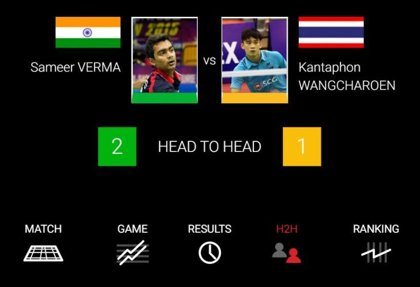| เวลา: 17.30 น. คอร์ท 2 ประเภทชายเดี่ยว (MS) |