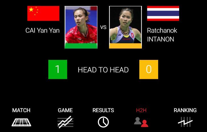 | 15.25 | หญิงเดี่ยว (WS) | รัชนก อินทนนท์[4] | CAI Yan Yan |