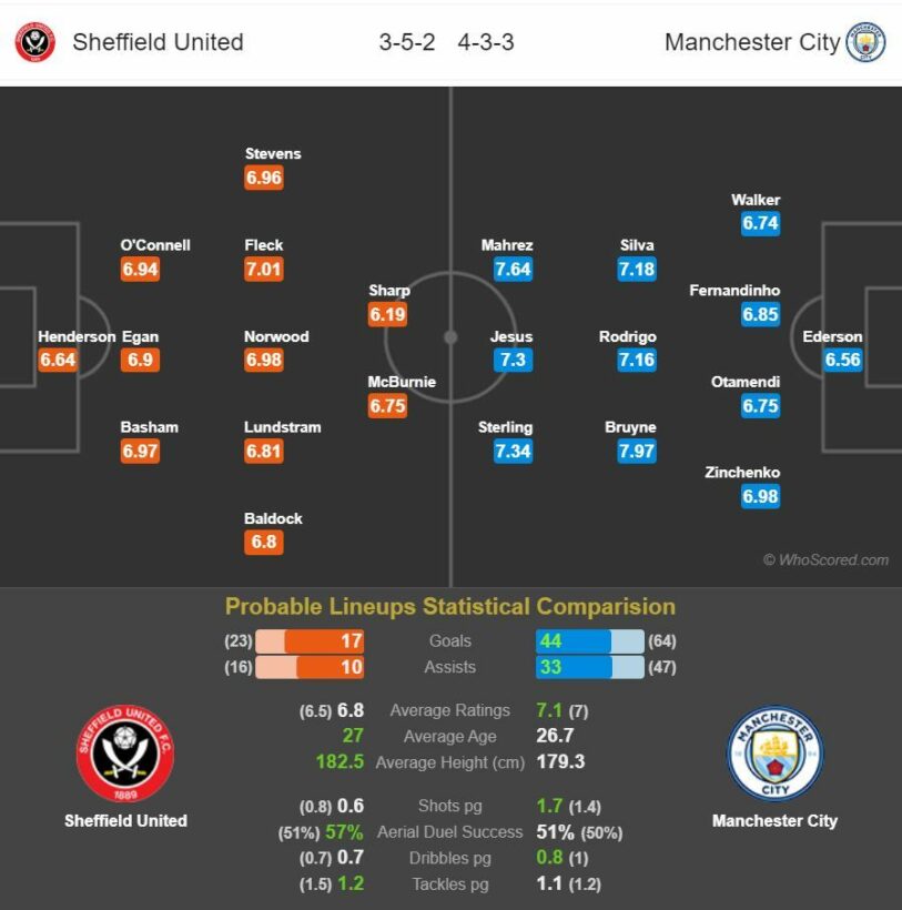 แมนซิตี้ (4-3-3) : เอแดร์ซอน โมราเอส – ไคล์ วอล์คเกอร์, แฟร์นานดินโญ่, นิโกลัส โอตาเม็นดี้, โอเล็คซานเดอร์ ซินเชนโก้ – ดาบิด ซิลบา, โรดรี้ เอร์นานเดซ, เควิน เดอ บรอยน์ – ริยาด มาห์เรซ, กาเบรียล เฆซุส, ราฮีม สเตอร์ลิ่ง
