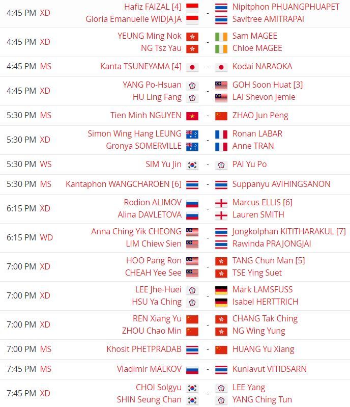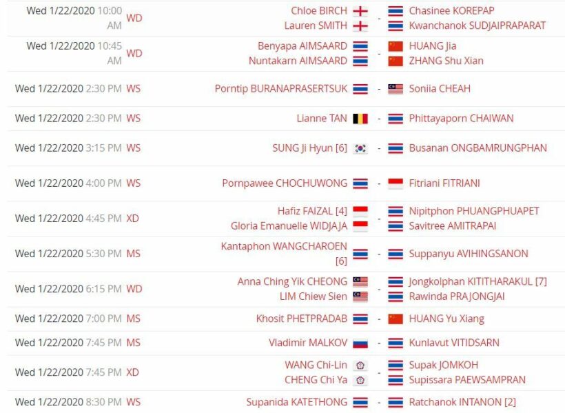 22 ม.ค. โปรแกรมการแข่งขัน นักแบดมินตันไทย รอบแรก