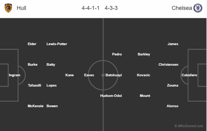 ฮัลล์ ซิตี้ (4-4-1-1) : แมตต์ อิงแกรม – ร็อบบี้ แมคเคนซ่า, ไรอัน ตาฟาโซลี่, รีซ เบิร์ก, คัลลั่ม เอลเดอร์ – ยาร์ร็อด โบเว่น, เลโอนาร์โด้ โลเปซ, ดาเนี่ยล บาตตี้, คีน เลวิส-พ็อตเตอร์ – เฮอร์บี้ เคน – ทอม เอเวส