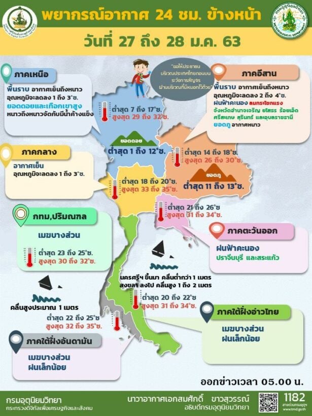 พยากรณ์อากาศประจำวันที่ 27 มกราคม 2563