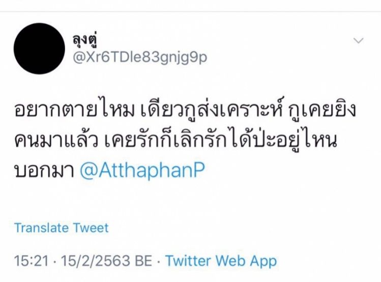 หลังจากที่มีผู้ใช้ทวิตเตอร์รายหนึ่ง ทวิตข้อความและลงรูปภาพอาวุธปืนพก และเมนชั่นถึงกันในเชิงข่มขู่คุกคามเอาชีวิต สร้างความหวาดกลัว และหวั่นวิตกแก่คนที่พบเห็นเป็นอย่างมาก ข้อความที่ทวิตนั้น อาทิ อยากตายไหมเดี๋ยวกูสงเคราะห์ กูเคยยิงคนมาแล้ว เคยรักก็เลิกรักได้ป่ะ อยู่ไหนบอกมา, ปืนสวยไหมคนดี, ถ้าเจอ จะเอาปืนยิงพวกมึงให้ตายโหงให้หมด, กูอยากฆ่าแล้วหั่นศพ, กูโมโห อยากฆ่ามัน กูอยากเอาปืนยิงมันให้ตายเลย ฯลฯ