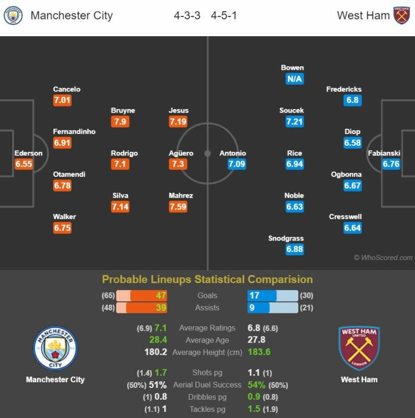 แดนกลางประกอบด้วย ดาบิด ซิลบา, โรดรี้ เอร์นานเดซ และ เควิน เดอ บรอยน์ ส่วนสามประสานแนวรุก จะมีทั้ง แบร์นาร์โด้ ซิลวา, เซร์กิโอ อเกวโร่ กุน และ กาเบรียล เฮซุส ลงล่าตาข่ายร่วมกัน