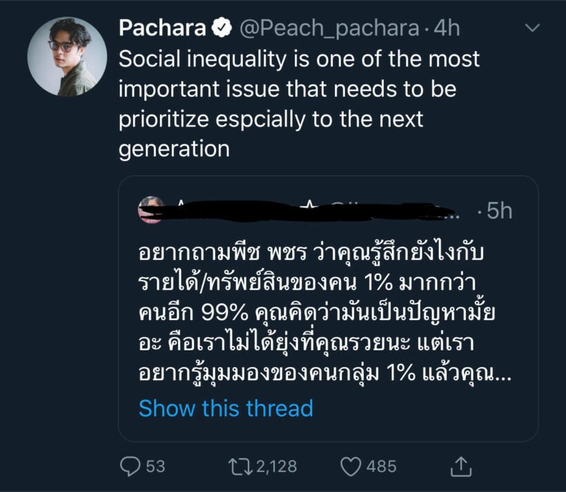 พีช พชร ในฐานะคนในตระกูลที่รวยอันดับต้นๆ ในประเทศไทย มีความเห็นทางการเมืองตอนนี้ยังไงบ้างหรอ สงสัย