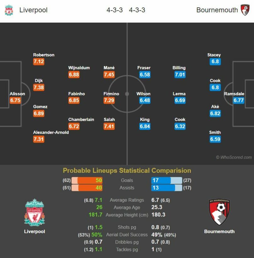 แดนกลางจะใช้ อเล็กซ์ อ็อกซ์เลด-แชมเบอร์เลน, ฟาบินโญ่ และ จอร์จินิโอ ไวจ์นัลดุม ส่วนสามประสานในแนวรุกก จะกลับมาเป็น โมฮาเหม็ด ซาล่าห์, โรแบร์โต้ ฟีร์มิโน่ และ ซาดิโอ มาเน่ ลงล่าตาข่ายร่วมกัน