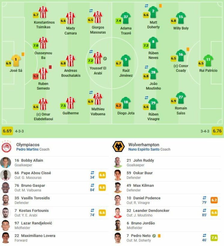 GOAL! นาทีที่ 53 กามาร่า พลิ้วมาทางฝั่งซ้ายของกรอบเขตโทษ ก่อนแทงให้ กิเลอร์เม่ ที่สอดขึ้นมาจากแถวสองหลุดเข้าไปสุดเส้นหลัง แล้วตบไปให้ เอล-อาราบี ที่ยืนรออยู่เสาไกล ได้ตั้งเท้าแปโล่งๆ โอลิมเปียกอส 10 คนออกนำ วูล์ฟแฮมป์ตัน ไปก่อนด้วยสกอร์ 1-0