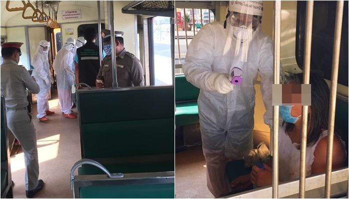 หลังทราบเรื่องจึงประสานโรงพยาบาลโนนสูง และเจ้าหน้าที่ตำรวจ สภ.โนนสูง ให้มาตรวจสอบ ทันทีที่ขบวนรถแล่นเทียบชานชาลาที่ 2 เวลา 09.00 น. เพื่อความปลอดภัยและความสะดวกในการปฏิบัติหน้าที่ เจ้าหน้าที่ส่วนหนึ่งได้เคลื่อนย้ายผู้โดยสารในโบกี้ออกมาอยู่ข้างนอก พร้อมจัดกำลังเจ้าหน้าที่สวมชุดป้องกันการติดเชื้อโรค 3 คน ขึ้นไปตรวจสอบตามกระบวนการคัดกรอง