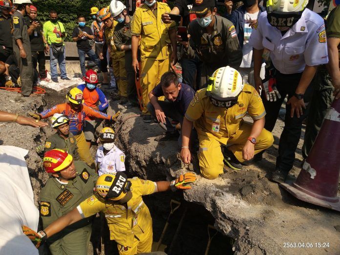 ด่วน ! ดินถล่มทับคนงานขุดถนน ย่านเอกมัย เจ้าหน้าที่เร่งช่วยชีวิต