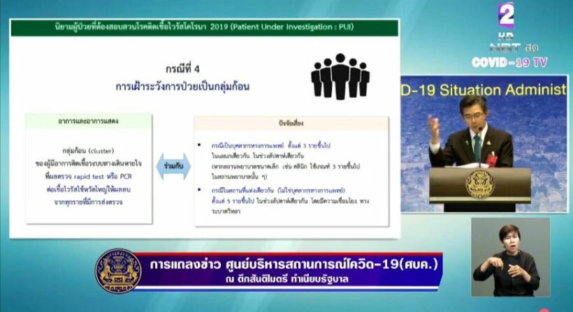 ในตอนหนึ่งของการแถลง นพ.ทวีศิลป์ วิษณุโยธิน ระบุถึง การขยายกลุ่มตรวจผู้เสี่ยงติดเชื้อโควิด-19 ซึ่งหากเข้าเกณฑ์อยู่ใน 5 กลุ่ม ด้านล่าง ตรวจฟรี