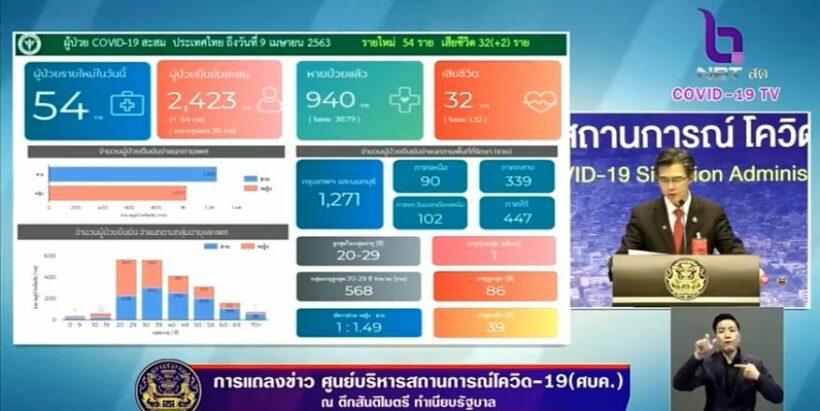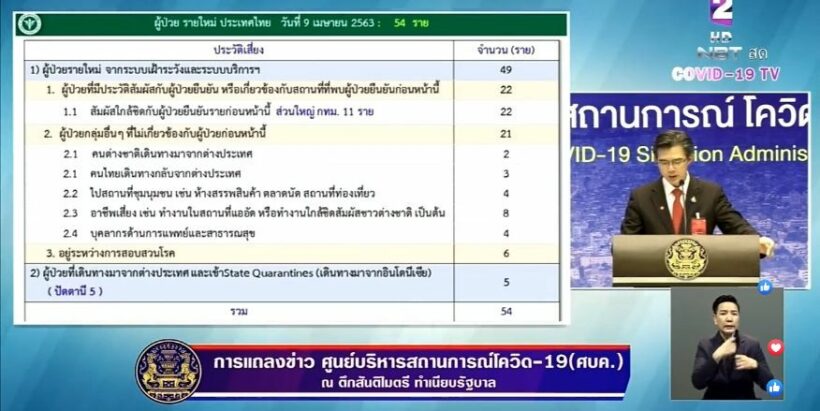 สถานการณ์โควิด 9 เมษายน ไทยติดเชื้อเพิ่ม 54 ราย ตายเพิ่ม 2
